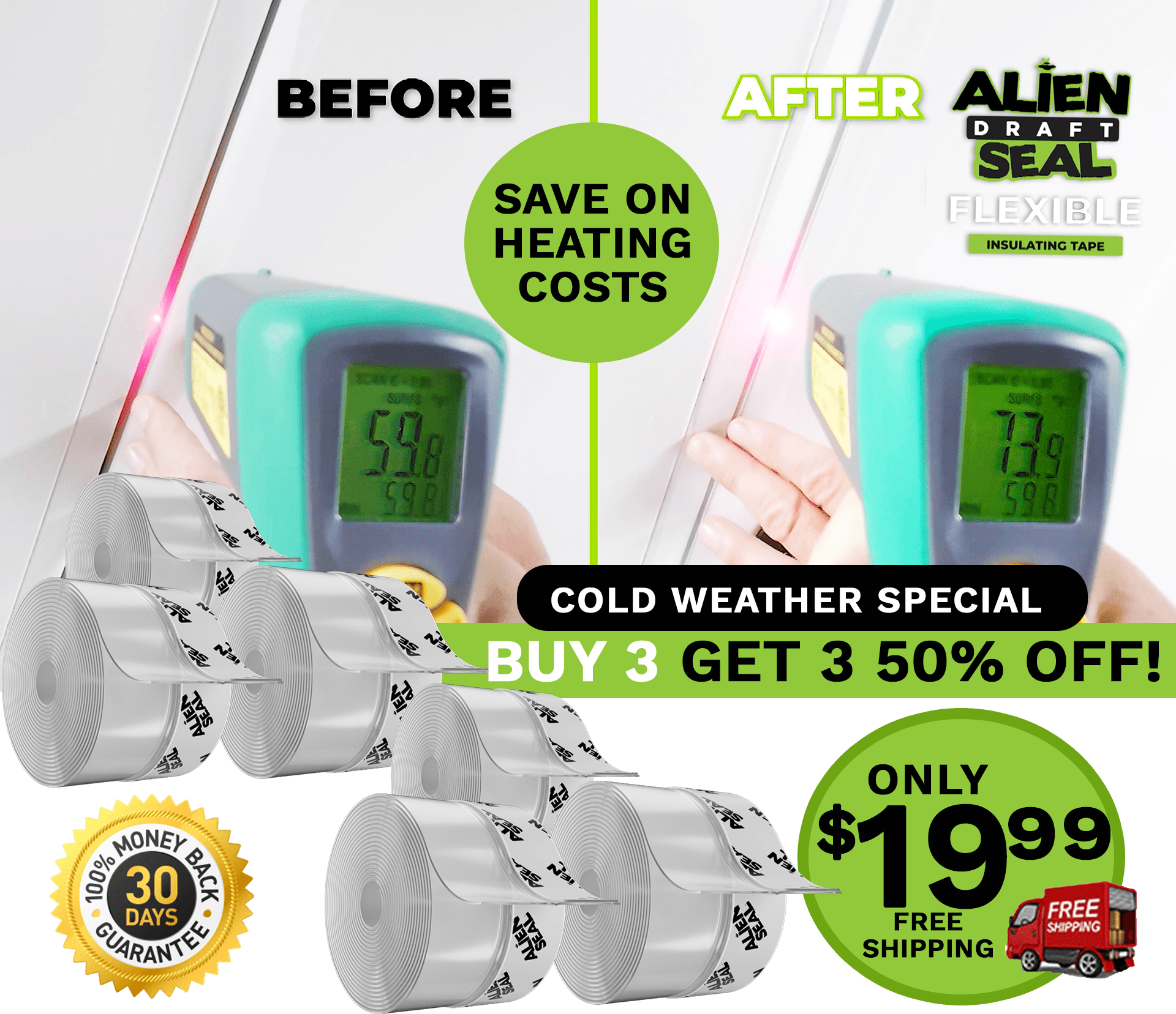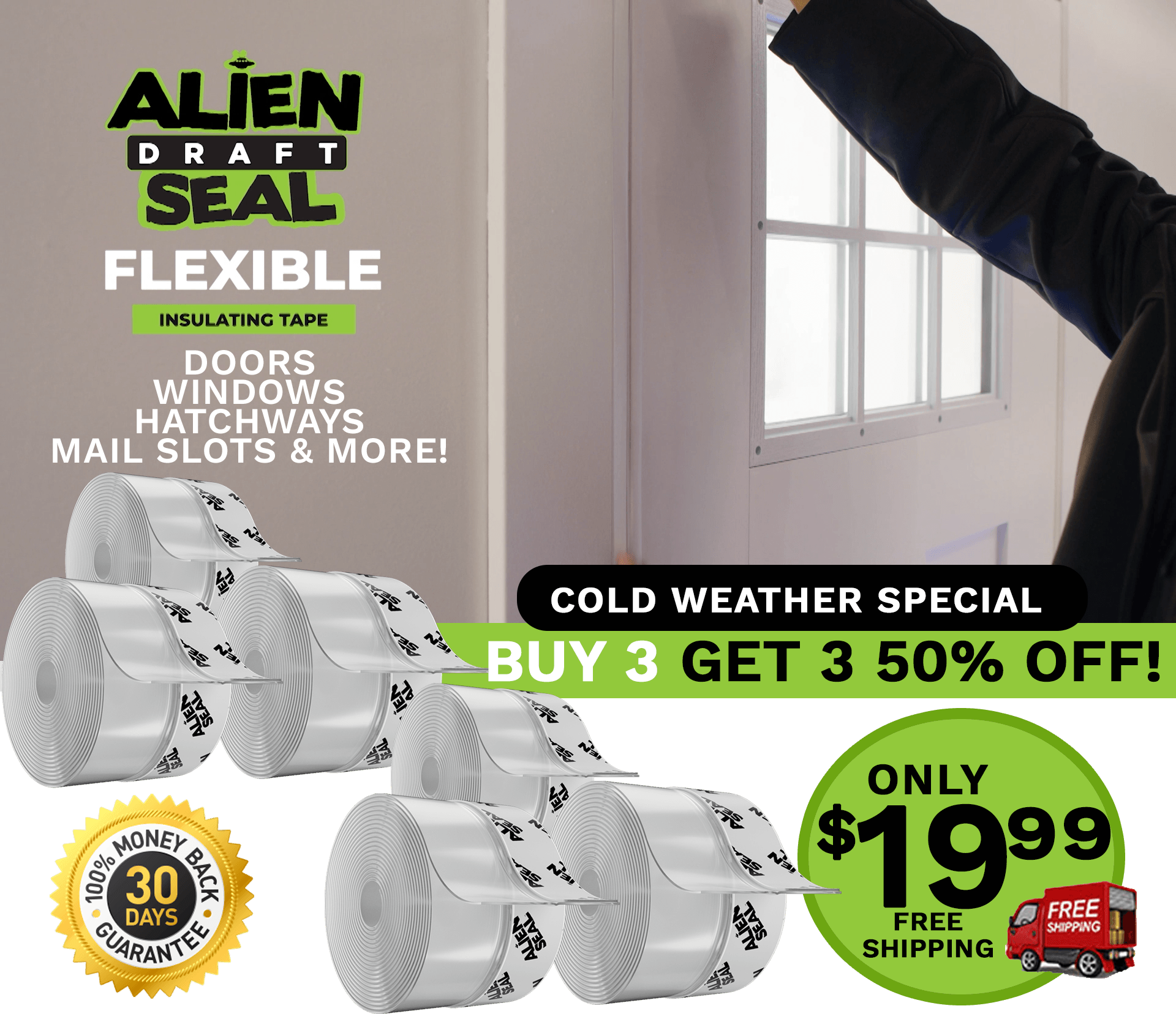 We are offering Alien Draft Seal direct to consumers. You can't buy Alien Seal at stores! And don't forget...When you buy just ONE roll of Alien Seal today we'll add TWO ROLLS for free! You'll get 3 rolls for just $19.99 + FREE SHIPPING!